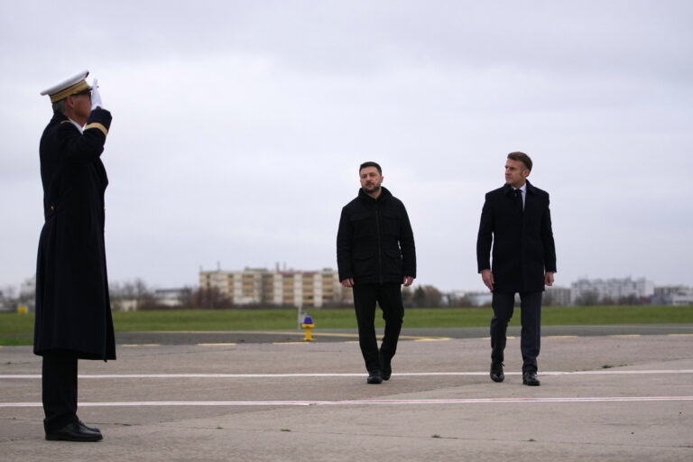 Ο Εμανουέλ Μακρόν υποδέχθηκε τον πρόεδρο της Ουκρανίας Βολοντίμιρ Ζελένσκι στην αεροπορική βάση του Βιλακουμπλέ, κοντά στο Παρίσι, πριν από την υπογραφή εξοπλιστικής συμφωνίας που χαρακτηρίζεται «ιστορική» από τον Ουκρανό πρόεδρο για την ενίσχυση της πολεμικής αεροπορίας και της αντιαεροπορικής άμυνας της Ουκρανίας.
