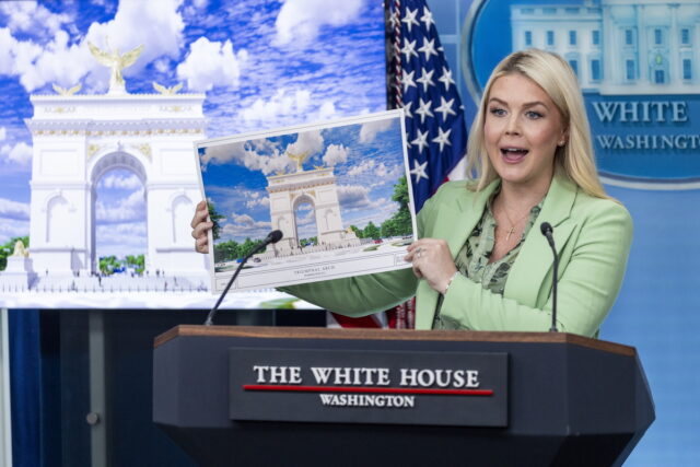 «Προς τιμήν αυτής της ιστορικής περίστασης», ο πρόεδρος Ντόναλντ Τραμπ και η κυβέρνησή του θα υποβάλουν σχέδια για την «Αψίδα του Θριάμβου των Ηνωμένων Πολιτειών», είπε η Λέβιτ.