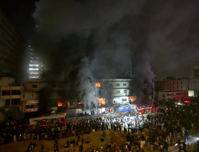 Η πυρκαγιά ξέσπασε αργά το βράδυ του Σαββάτου στο πολυώροφο εμπορικό κέντρο Gul Plaza στην επιχειρηματική συνοικία της πόλης και έκαιγε για περισσότερο από 24 ώρες, εμποδίζοντας τις προσπάθειες διάσωσης στην πυκνοκατοικημένη περιοχή.