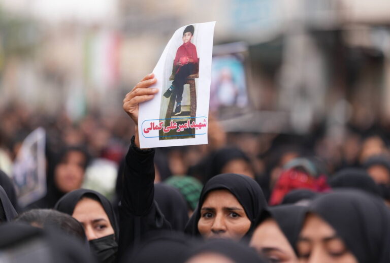Ιρανοί θρηνούν στην κηδεία των θυμάτων της αεροπορικής επιδρομής σε σχολείο θηλέων στην πόλη Μιναμπ, στο νότιο Ιράν, 3 Μαρτίου 2026. EPA/HANDOUT HANDOUT EDITORIAL USE ONLY/NO SALES
