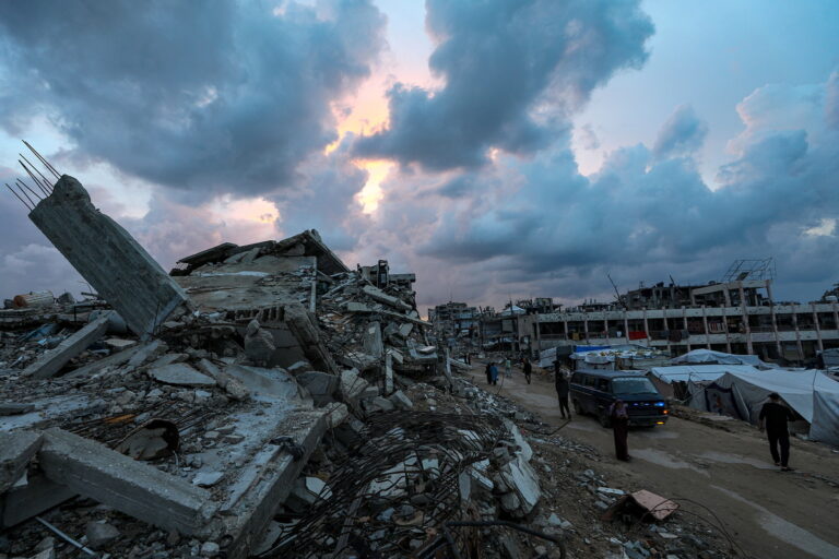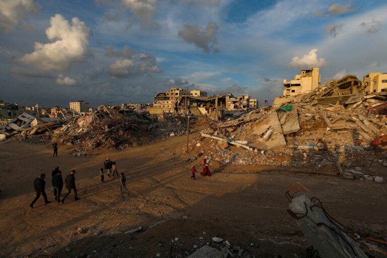 Καθώς ο χειμώνας έχει φτάσει στη Λωρίδα της Γάζας εκτοπισμένοι Παλαιστίνιοι αναζητούν καθημερινά σιδηρόβεργες στα ερείπια των κατεστραμμένων τους σπιτιών προκειμένου να στηρίξουν τις αυτοσχέδιες σκηνές τους, με τον ΟΗΕ να εκτιμά ότι θα χρειαστούν χρόνια για να ανακάμψει ο παλαιστινιακός θύλακας μετά τον πόλεμο.