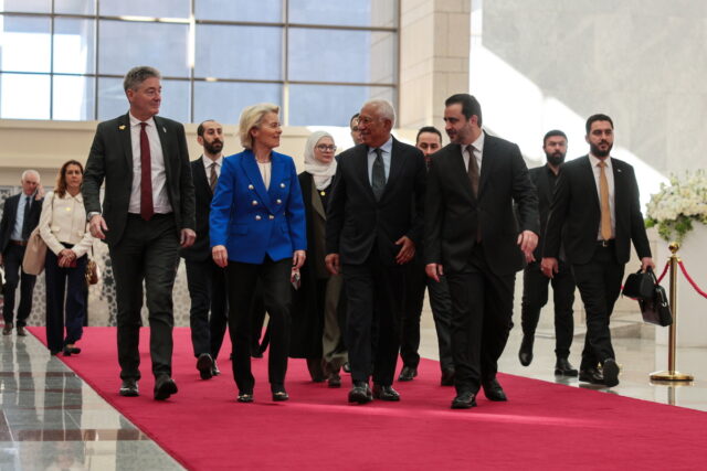 Η πρόεδρος της Ευρωπαϊκής Επιτροπής πραγματοποιεί περιοδεία στην περιοχή μαζί με τον πρόεδρο του Ευρωπαϊκού Συμβουλίου Αντόνιο Κόστα.