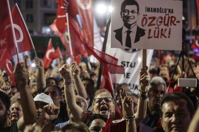 Ταυτόχρονα ωστόσο, νέα έρευνα, αυτήν τη φορά για «κατασκοπεία» ξεκίνησε κατά του φυλακισμένου δημάρχου της Κωνσταντινούπολης Εκρέμ Ιμάμογλου, του μεγαλύτερου πολιτικού αντίπαλου του Ερντογάν, ο οποίος βρίσκεται στη φυλακή από τον Μάρτιο με κατηγορίες περί «διαφθοράς», μετέδωσε το πρακτορείο Anadolu.