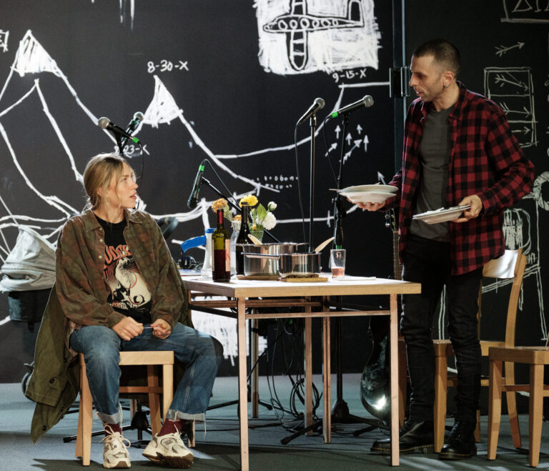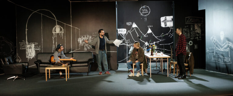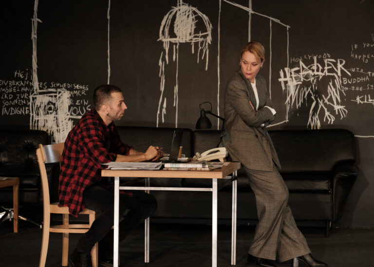 Σκηνή από την παράσταση «Εχθρός του Λαού», μια παραγωγή της Schaubühne Berlin σε συνεργασία με το Θέατρο του Νέου Κόσμου © Patroklos Skafidas