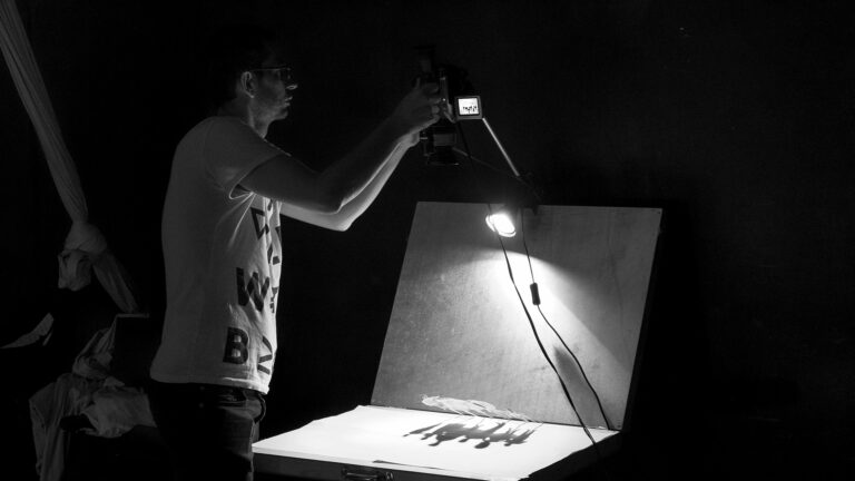 Το χαμηλό μπάτζετ δεν σε βοηθά να εφευρίσκεις πράγματά όμως, και ίσως και άλλα μονοπάτια στο δημιουργικό σου κομμάτι; Αυτό που ζούμε εδώ, είναι μόνο η μέθοδος του φτωχού. Εντάξει θα μας πάει σε κάποια μονοπάτια που δεν θα σκεφτόμασταν αλλιώς, αλλά αν πω ωραία όλα αυτά, αλλά θα ήθελα να κάνω Artificial Intelligence θα γελάσουν στα μούτρα μου και θα μου πουν, καλά βάλε την καμερούλα εδώ και ότι βγει. Στην παράσταση του Χουβαρδά, μου ζητήθηκε ξαφνικά να βρω μια μικροκάμερα για το κεφάλι του Δημήτρη Πιατά που να κοιτάει αυτόν. Για να συμβεί πραγματικά αυτο πρέπει να έχεις wireless για να μην έχεις καθυστερήσεις στην εικόνα, αλλά δεν υπήρχε, οπότε σκαρφίστηκα και έφερα την κάμερα του αυτοκινήτου. Και έτσι κάναμε κι άνετα πρόβες χωρίς να μας νοιάζει που έσπαγαν συχνά.