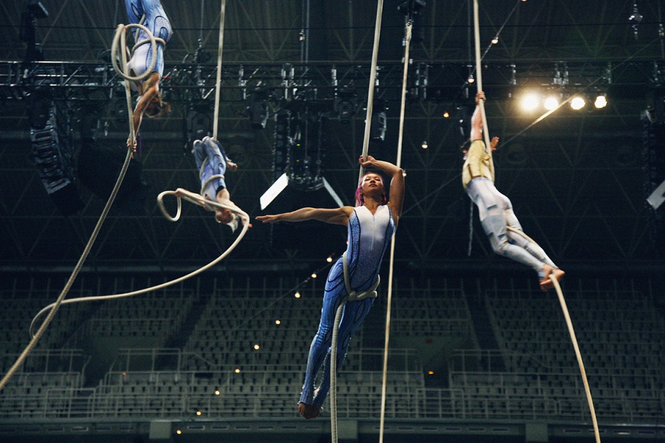 Στην σκηνή τώρα οι ακροβάτες συνεχίζουν τις πρόβες τους. Ξεχωρίζει το νούμερο «Ισπανικά δίκτυα» με πέντε ακροβάτες που πετούν ψηλά πάνω από την σκηνή, συνδεδεμένοι με ένα ειδικά σχεδιασμένο εναέριο μεταφορέα που ονομάζεται “telepherique” και αφήνονται να πέσουν στο κενό, ένας-ένας, δύο-δύο, ή όλοι μαζί, συγκρατούμενοι μόνον από τα σχοινιά που είναι τυλιγμένα στην μέση ή στους αστραγάλους τους. Είναι το αγαπημένο νούμερο του Michael Smith που λέει χαρακτηριστικά «ποιος δεν έχει ονειρευθεί ως παιδί ότι πετάει; Κι αυτό που φαντάζει αδύνατο οι καλλιτέχνες μας το κάνουν πραγματικότητα και ελπίζω να εμπνέουμε το κοινό να «πετάξει» κι αυτό και να κάνει στη ζωή του αυτό που πραγματικά επιθυμεί».