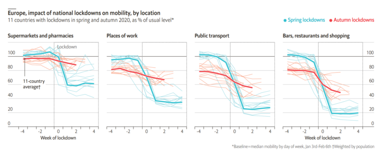 Θεωρώντας πως η δημόσια συζήτηση έχει καταδείξει σε μεγάλο βαθμό τα αίτια που προκάλεσαν την εκτίναξη του δεύτερου κύματος στην Ελλάδα, θα θέλαμε να σταθούμε σε ένα από αυτά. Συγκεκριμένα στεκόμαστε στο πώς το οικονομικό και κοινωνικό αποτύπωμα της πανδημίας υπήρξε όχι μόνο ως αποτέλεσμά της αλλά ταυτόχρονα και αίτιο της μαζικής αναζωπύρωσής της – η οποία οδήγησε και στην καθυστερημένη κάμψη του δεύτερου κύματος. Σύμφωνα με τα στοιχεία που διαβάζουμε στην ηλεκτρονική έκδοση του Economist (28.11.2020), η αποτελεσματικότητα του δεύτερου lockdown στην Ευρώπη, όσον αφορά τον περιορισμό της κινητικότητας, είναι κατά πολύ περιορισμένη σε σχέση με την άνοιξη. Μια ματιά στους δρόμους των ελληνικών μεγάλων πόλεων τις παραδοσιακές «ώρες αιχμής» σε σύγκριση με τον Απρίλη, μπορεί εύκολα να πείσει και τους πιο καχύποπτους για τον περιορισμένο χαρακτήρα αυτής της δεύτερης προσπάθειας ανάσχεσης της επιδημίας.