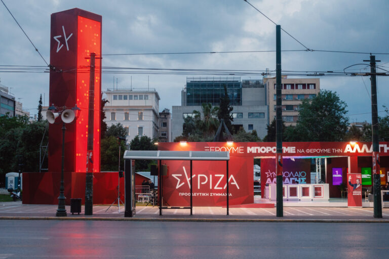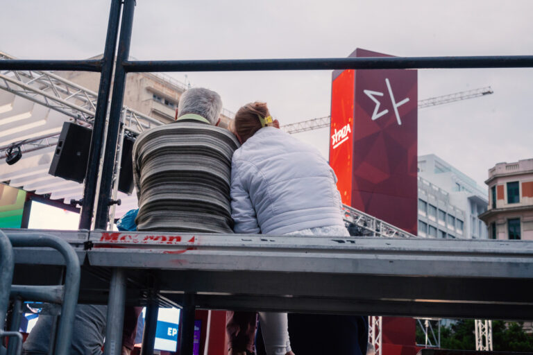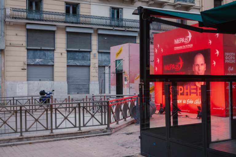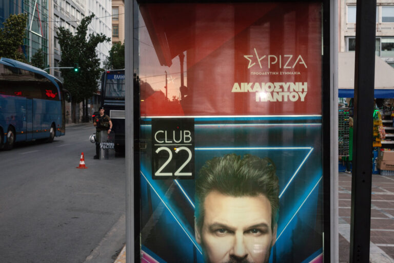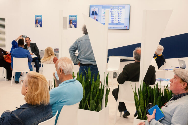 Βόλτα στα εκλογικά περίπτερα των κομμάτων στο κέντρο της Αθήνας τη βραδιά των εκλογών.