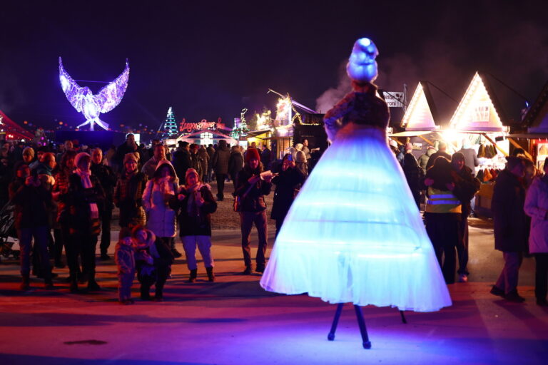 Χορευτές και παραστάσεις δρόμου στο Tollwood Winterfestival, στο Μόναχο.