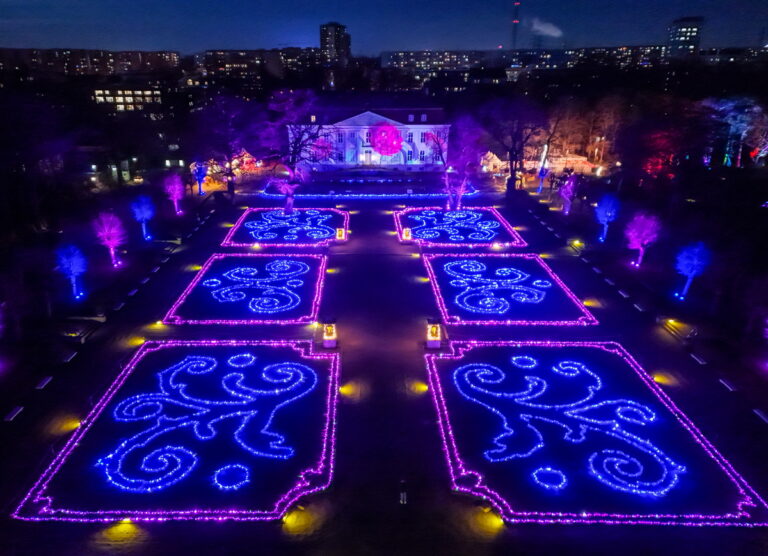 Ο ολοφώτιστος κήπος του παλατιού Friedrichsfelde στο Βερολίνο.