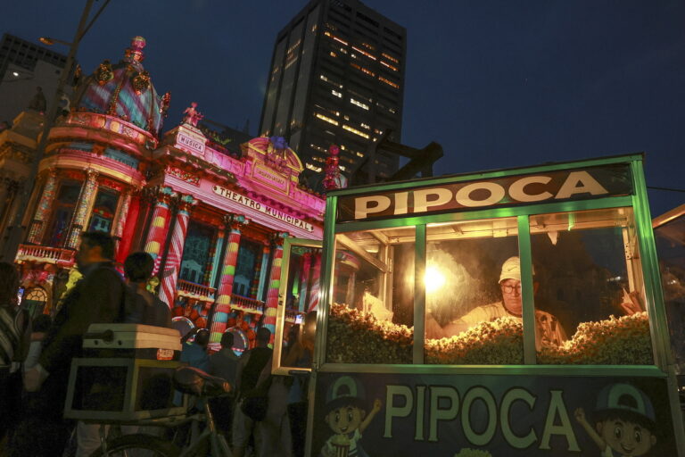Ποπ κορν έξω από το, ντυμένο χριστουγεννιάτικα, Δημοτικό Θέατρο του Ρίο ντε Τζανέιρο.