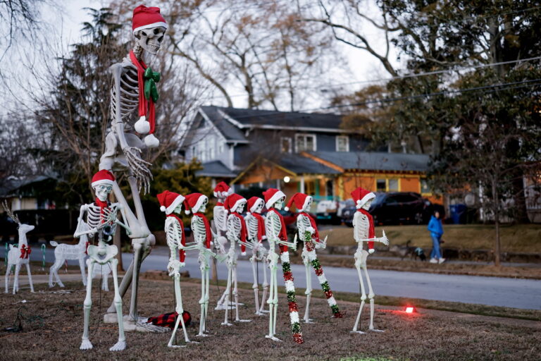Ντυμένοι Άι Βασίληδες, οι σκελετοί που ξέμειναν από την γιορτή του Halloween περιμένουν τα Χριστούγεννα σε ένα προάστιο της Ατλάντα.