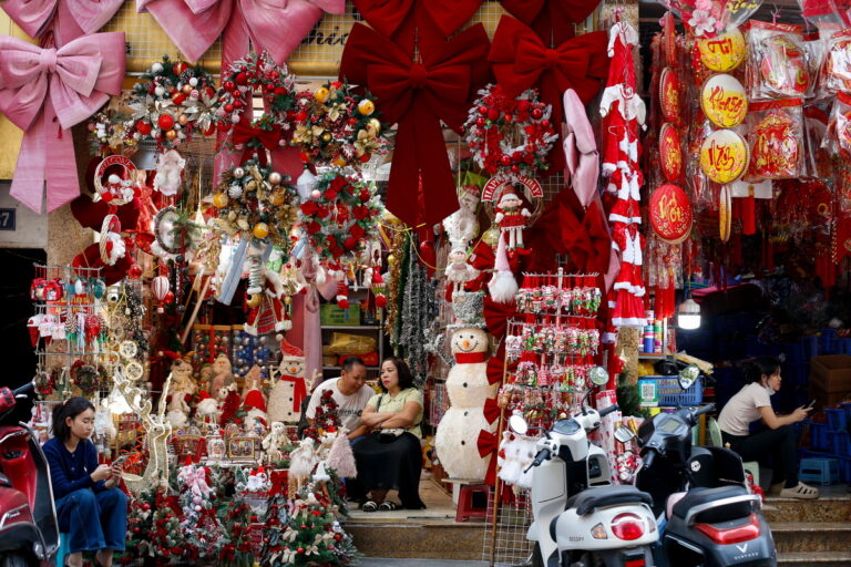 Τεράστιοι φιόγκοι και στολίδια στο Ανόι.