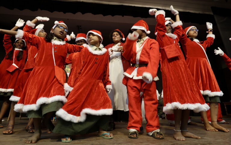 Κορίτσια και αγόρια με αναπηρία σε χριστουγεννιάτικη εκδήλωση του Art Cultural Educational Enlight Foundation στο Μπανγκαλόρ της Ινδίας.