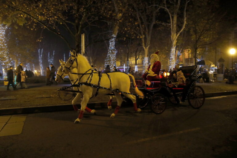 Ο Άι Βασίλης οδηγεί τους επισκέπτες στη χριστουγεννιάτικη αγορά του Ζάγκρεμπ.