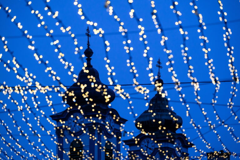 Χριστουγεννιάτικα φώτα στολίζουν το κέντρο της πόλης Szekesfehervar.