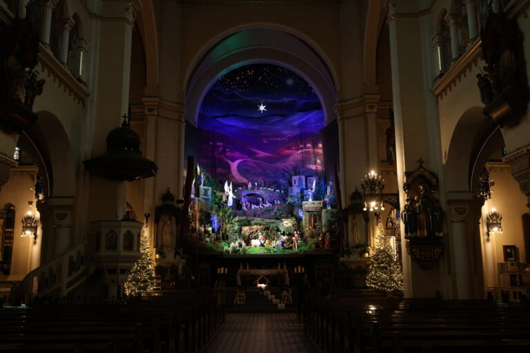 Φάτνη σε μεγάλες διαστάσεις και με φιγούρες που κινούνται, εκτίθεται στη Βασιλική του Αγίου Λουδοβίκου του Βασιλιά και της Κοίμησης της Θεοτόκου στην Κατοβίτσε, στη νότια Πολωνία.