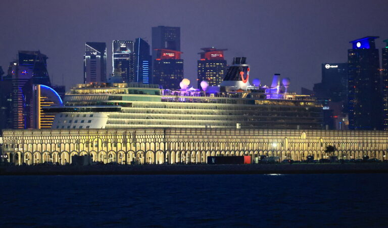 Το κρουαζιερόπλοιο της TUI «Mein Schiff 5» είναι αγκυροβολημένο στο λιμάνι της Ντόχα, Κατάρ, 2 Μαρτίου 2026. EPA/HANNIBAL HANSCHKE