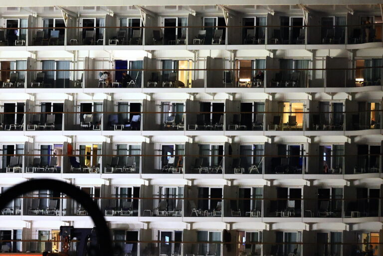 Επιβάτες ξεχωρίζουν στα δεκάδες καταστρώματα σε κρουαζιερόπλοιο της TUI που βρίσκεται αγκυροβολημένο στο λιμάνι της Ντόχα, Κατάρ, 2 Μαρτίου 2026. EPA/HANNIBAL HANSCHKE