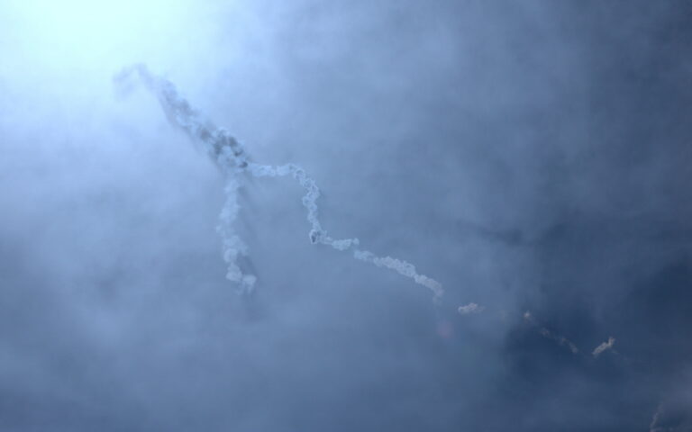 Ο καπνός από τους πυραύλους που αναχαιτίστηκαν στον ουρανό πάνω από τη Ντόχα του Κατάρ, στις 5 Μαρτίου 2026. EPA/HANNIBAL HANSCHKE