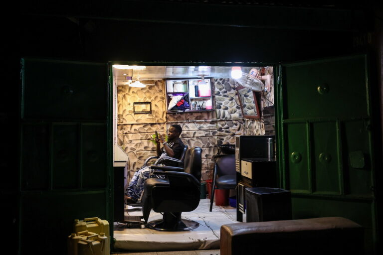 Κουρείο ανοιχτό το βράδυ, Καμπάλα, Ουγκάντα, 18 Ιανουαρίου 2026.