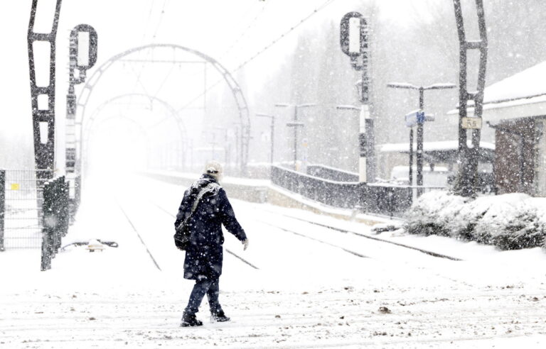 Επιβάτης τρένου στο χιονισμένο σιδηροδρομικό σταθμό Hollandsche Rading, Ολλανδία, 5 Ιανουαρίου 2026. EPA/SANDER KONING