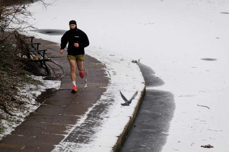 Άντρας τρέχει δίπλα στο παγωμένο Regent's Canal στο Regent's Park, Λονδίνο, 6 Ιανουαρίου 2026. EPA/TOLGA AKMEN