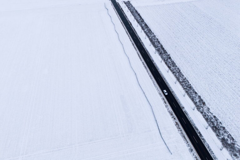 Ένα αυτοκίνητο κινείται κατά μήκος ενός έρημου αυτοκινητόδρομου που διασχίζει χιονισμένα χωράφια στη Φρανκφούρτη, 6 Ιανουαρίου 2026. EPA/Matias Basualdo