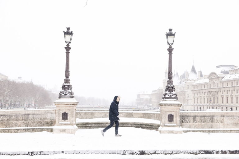 Πυκνό χιόνι πέφτει στους δρόμους του κέντρου του Παρισιού,, 7 Ιανουαρίου 2026. EPA/Teresa Suarez