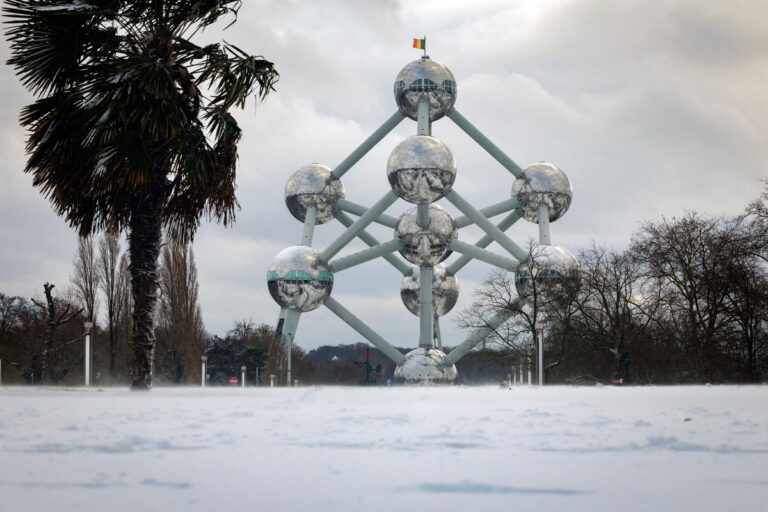 Χιόνι καλύπτει το τοπίο γύρω από το Atomium στις Βρυξέλλες, 7 Ιανουαρίου 2026. EPA/OLIVIER MATTHYS