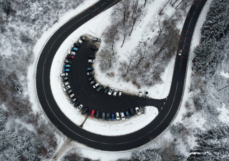 Φωτογραφία που τραβήχτηκε με drone δείχνει έναν δρόμο στην χιονισμένη οροσειρά Taunus στο Oberursel κοντά στη Φρανκφούρτη, στις 7 Ιανουαρίου 2026. EPA/RONALD WITTEK