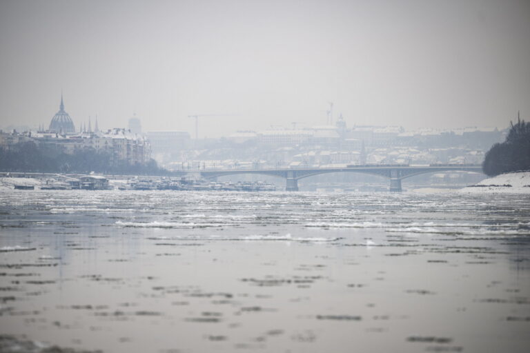 Кομάτια πάγου επιπλέουν στα νερά του ποταμού Δούναβη στη Βουδαπέστη, Ουγγαρία, 10 Ιανουαρίου 2026. EPA/BOGLARKA BODNAR
