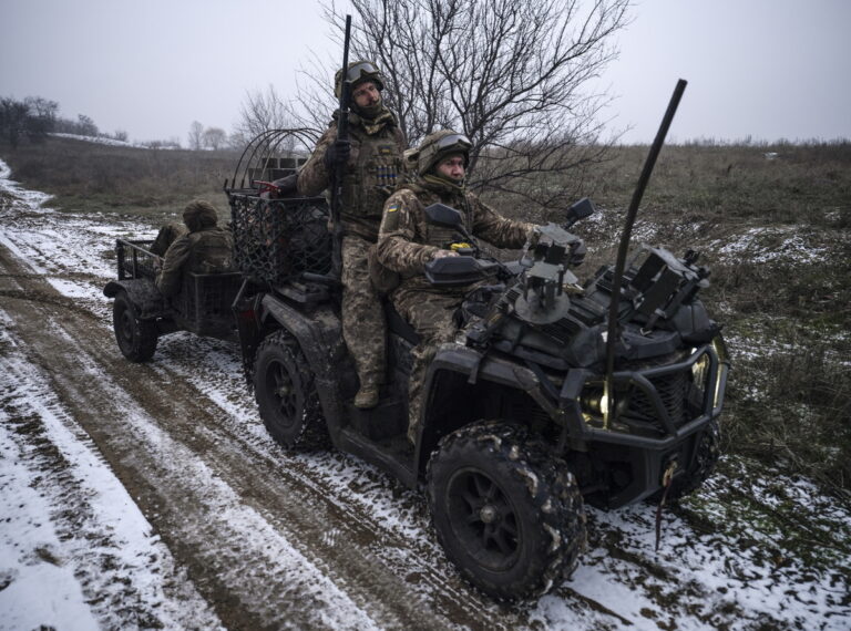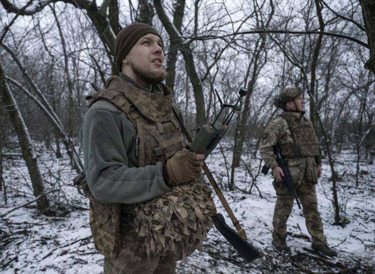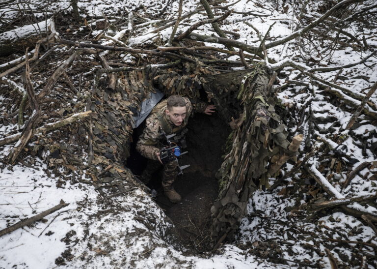 Η Iryna, στρατιωτικός της 93ης Μηχανοκίνητης Ταξιαρχίας, με κωδικό «Joker», και ο συμπολεμιστής της με κωδικό «Kalyna», χειρίζονται ένα drone στη θέση τους στην περιοχή του Ντόνετσκ, Ουκρανία, στις 16 Δεκεμβρίου 2025, εν μέσω της συνεχιζόμενης ρωσικής εισβολής. EPA/Υπηρεσία Τύπου της 93ης Μεμονωμένης Μηχανοκίνητης Ταξιαρχίας Kholodnyi Yar των Ουκρανικών Ένοπλων Δυνάμεων