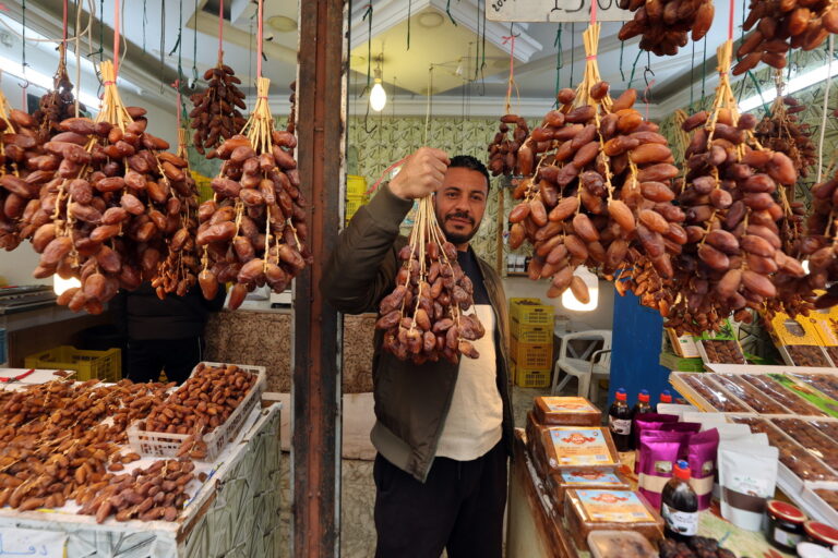 Τυνήσιος πωλητής πουλάει χουρμάδες, το αγαπημένο έδεσμα του Μωάμεθ, σε υπαίθρια αγορά στην Τύνιδα της Τυνισίας, πριν από την έναρξη του Ραμαζανιού. 17 Φεβρουαρίου 2026. EPA/MOHAMED MESSARA
