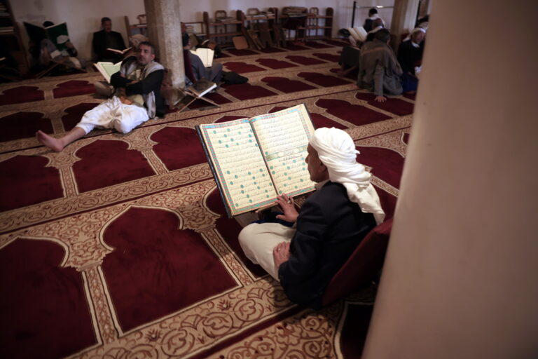 Μουσουλμάνοι διαβάζουν στίχους από το ιερό Κοράνι σε ένα τζαμί, μία ημέρα πριν από την έναρξη του Ραμαζανιού στη Σαναά, Υεμένη, 17 Φεβρουαρίου 2026. EPA/YAHYA ARHAB