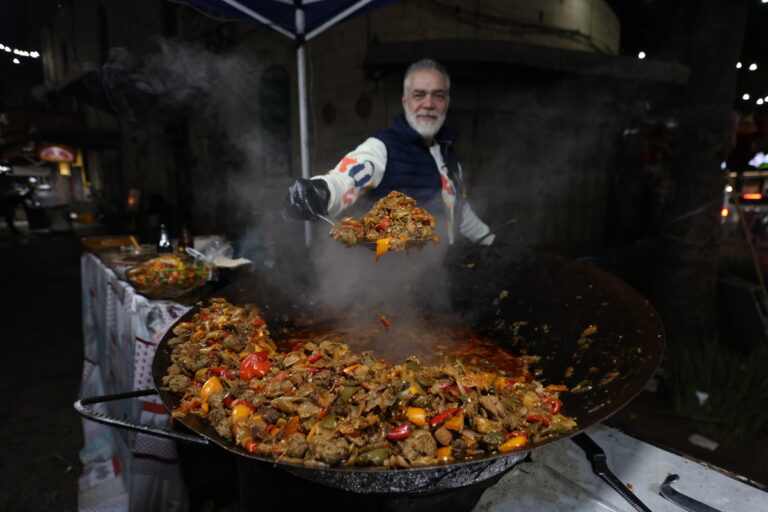 Παλαιστίνιοι πωλητές πωλούν παραδοσιακά εδέσματα στο δρόμο, καθώς προετοιμάζονται για το Ραμαζάνι σε μια αγορά στην πόλη Νάμπλους της Δυτικής Όχθης, 17 Φεβρουαρίου 2026. EPA/ALAA BADARNEH
