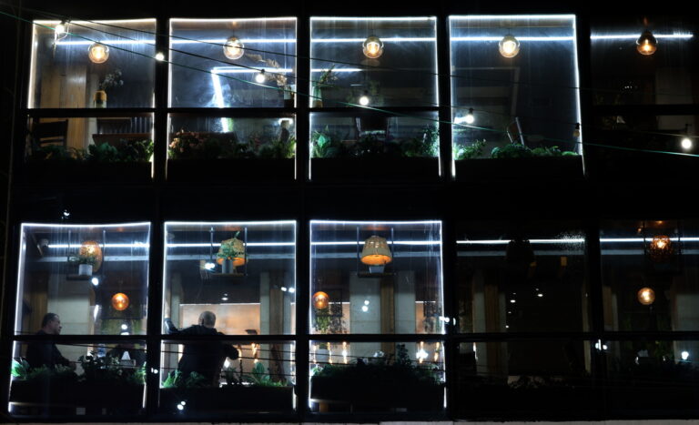 Παλαιστίνιοι κάθονται σε εστιατόριο σε μια αγορά στην πόλη Νάμπλους της Δυτικής Όχθης, το βράδυ πριν την έναρξη του Ραμαζανιού. 17 Φεβρουαρίου 2026. EPA/ALAA BADARNEH