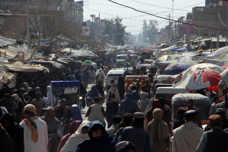 Κόσμος συνωστίζεται σε δρόμο ενός παζαριού στο Κανταχάρ του Αφγανιστάν, για να προμηθευθούν φαγητό την πρώτη ημέρα του Ραμαζανιού. 18 Φεβρουαρίου 2026. EPA/QUDRATULLAH RAZWAN