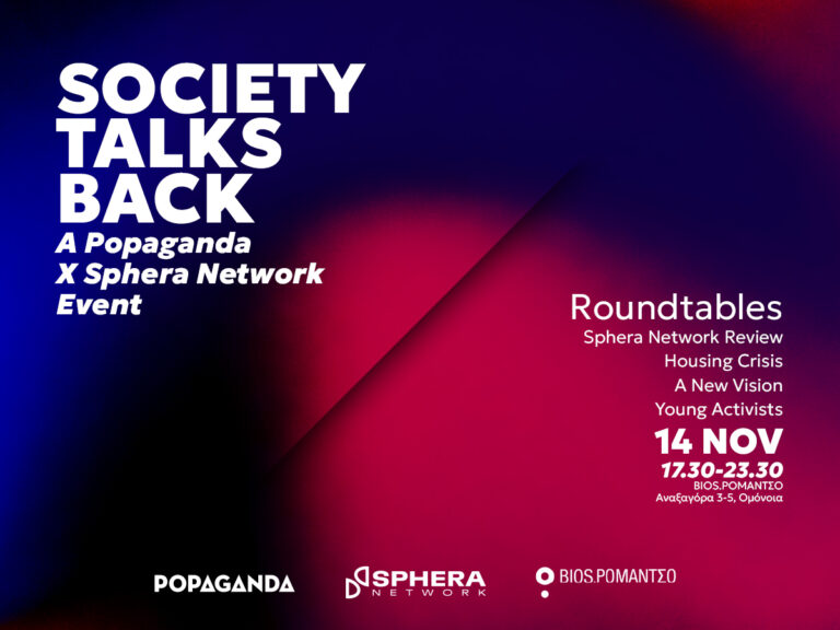 Η Popaganda, μέλος του Ευρωπαϊκού δικτύου Ανεξάρτητων Μέσων Sphera Network επιστρέφει για μία ακόμα χρονιά στο Ρομάντσο με ένα απόγευμα γεμάτο συζητήσεις με φορείς της κοινωνίας και προσωπικότητες από διαφορετικές γενιές και κοινωνικές ομάδες. Roundtables, speed meetings on stage και προβολές των short documentaries που παράγουν τα media του Sphera Network, την Παρασκευή στις 14 Νοεμβρίου στο Ρομάντσο από τις 17:30 μέχρι τις 23:30.