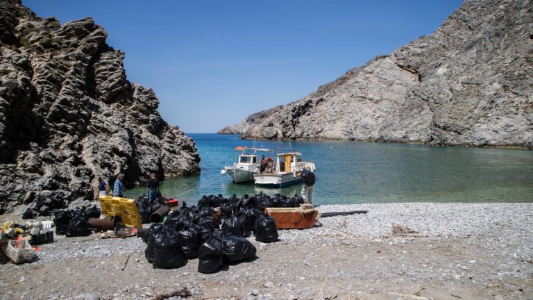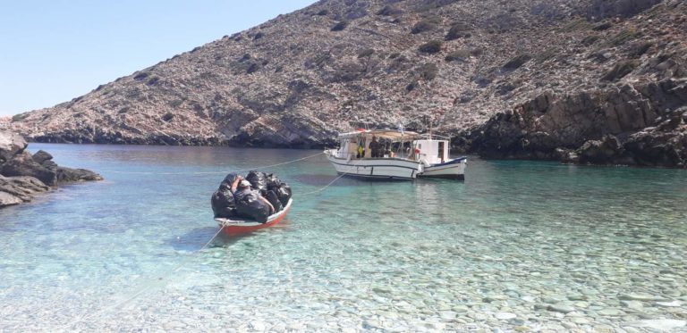 «Όποτε συγκεντρώνουμε χρήματα, ξεκινάμε με ένα αλιευτικό σκάφος κατά τις 8 το πρωί - όπως έγινε και τις προηγούμενες ημέρες - με σκοπό να βρεθούμε στις ακτές και μέσα από τις ενέργειές μας, να υλοποιήσουμε τρεις βασικούς στόχους. Καταρχάς, οι δράσεις μας πρέπει να γίνονται τον Απρίλιο και τον Μάιο καθώς μετά τις φουρτούνες του χειμώνα μαζεύονται πολλά απορρίμματα στις ακτές. Αυτοί οι δύο μήνες όμως, είναι και οι μήνες αναπαραγωγής για πολλά είδη ψαριών. Ένας στόχος λοιπόν, είναι να απέχουμε από την αλιεία όσο μπορούμε και για όσο διαθέτουμε χρήματα. Έναντι του ψαρέματος, εκείνες τις μέρες υλοποιούμε τις δράσεις μας, πηγαίνοντας στις βόρειες ακτές της Αμοργού (Βλυχάδα, Ναυάγιο Κ. Μεριάς, Αγ. Σαράντα, Τυροκόμο, Μακρί, Μεγάλη και Μικρή Βλυχάδα Αιγιάλης κ.α.), που δεν είναι προσβάσιμες από τη στεριά και μαζεύουμε σκουπίδια, ικανοποιώντας τον δεύτερο στόχο μας, την υιοθέτηση ενός βιώσιμου τρόπου αντιμετώπισης της ολοένα αυξανόμενης ρύπανσης των ακτών από πλαστικά», μου αναφέρει ο κύριος Κρόσμαν κατά την τηλεφωνική μας επικοινωνία.