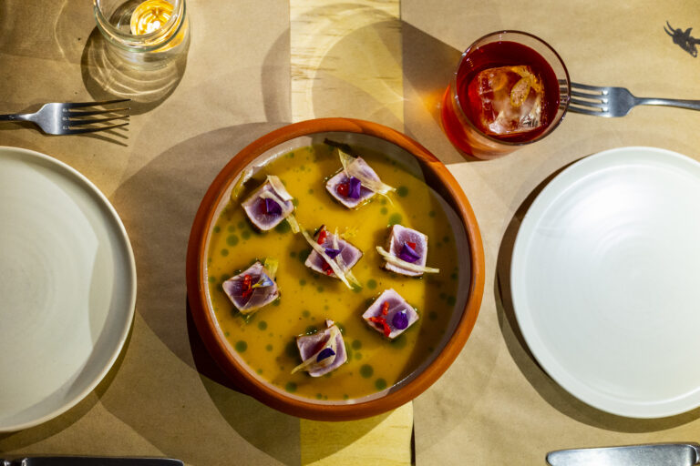 Η ίδια αποκαλεί το Simá «μπακαλομπάρ» και φαίνεται πως ο τίτλος του ταιριάζει γάντι. Όσο για το όνομα, οφείλεται στο γεγονός πως εδώ όλα όσα θα γευτείτε προέρχονται από διπλανές περιοχές. Είτε είναι τοπικά προϊόντα της ίδιας της Τήνου, είτε φτιάχνονται σε κάποιο κοντινό νησί. Ό,τι έρθει στο τραπέζι σας, πάντως, έχει βγει από την ελληνική γη. Στο μενού που δεν είναι μεγάλο, αλλά είναι ιδιαιτέρως προσεγμένο, θα βρείτε πιάτα που μπορούν να σταθούν ως κυρίως, αλλά και να μπουν στη μέση του τραπεζιού για να τα μοιραστεί μια παρέα και να έρθει σιμά. «Η ιδέα πίσω από το φαγητό μας είναι να θυμίζει bar food, τσιμπητό στην μέση», εξηγεί η Ιωάννα Πιλάτη. Μη φύγετε αν δεν δοκιμάσετε τις τηγανιτές αγκινάρες με σος hollandaise, κρόκο Κοζάνης και γραβιέρα Τήνου, αλλά και τα μαυρομάτικα φασόλια, με αλμύρα και καπνιστό σκουμπρί. Και να θυμάστε, το Simá ανοίγει τις πόρτες του από τις 10 π.μ προσφέροντας νόστιμο ελληνικό πρωινό.