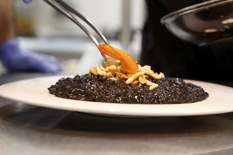 Risotto με μελάνι σουπιάς και θαλασσινά.