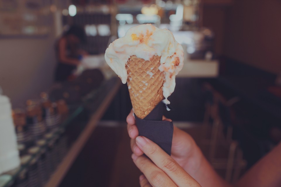 Απολαμβάνοντας το παγωτό ανθότυρο με κατσικίσιο τυρί και περγαμόντο.