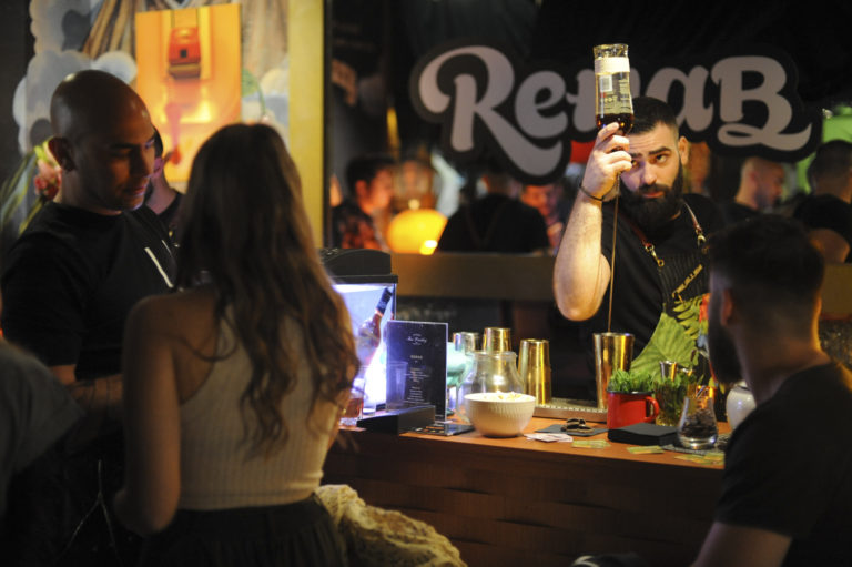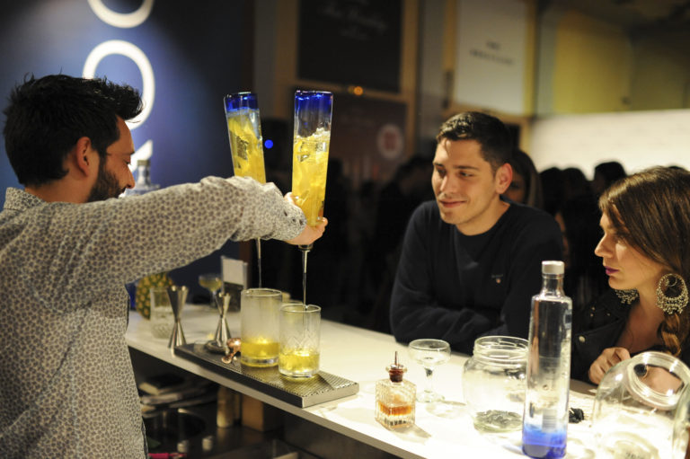 Πρώτο pop-up μπαρ από τα αριστερά, δίπλα στην είσοδο, το Alexander’s Bar της Μεγάλης Βρετανίας σε αγαστή συνεργασία με το whisky Johnnie Walker Gold Label Reserve. Με δύο προτάσεις, ένα straight serve με συνοδεία μιας δικής τους χειροποίητης bitter μπουκίτσας σοκολάτας, γεμισμένη με κρέμα από whisky Johnnie Walker Gold Label Reserve και πασπαλισμένη με πούδρα από εσπεριδοειδή και λεβάντα, και το εξίσου ενδιαφέρον The Golden Gentleman - ένα "αυστηρό" highball με ουίσκι, σόδα και bitters.