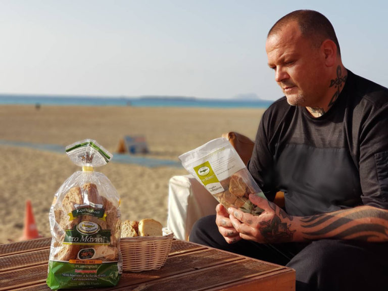 Επόμενος σταθμός ήταν η πλατεία του χωριού και το τραπέζι που στήθηκε με προϊόντα «Το Μάννα» Τσατσαρωνάκη κι επιμελήθηκε ο Δημήτρης Σκαρμούτσος για να επιστεγάσει την συνεργασία τους. Σερβίροντάς μας πιάτα που συνδυάζουν τις γευστικές μνήμες της κρητικής κουζίνας και την φιλοσοφία της παράδοσης με την σύγχρονη διατροφική κουλτούρα, όπως αβγά με στάκα και τριμμένο παξιμάδι, ντακάκια με τομάτα και κινόα και τσιγαριαστό αρνάκι με παξιμάδι, ο Δημήτρης Σκαρμούτσος δήλωσε: «Η Κρήτη είναι ένας ευλογημένος τόπος, φημισμένος για τα προϊόντα της, τους ανθρώπους της και την ξεχωριστή της κουλτούρα. Είμαι ενθουσιασμένος για τη συνεργασία μου με αυτή την ξεχωριστή οικογένεια θέτοντας ως κοινό στόχο να γνωρίσει ο κόσμος τους μοναδικούς διατροφικούς συνδυασμούς του παξιμαδιού «Το Μάννα». Συνδυασμοί που αφορούν όλα τα γεύματα της ημέρας με πολλά και διαφορετικά προϊόντα, πέρα από αυτά που έχουμε συνηθίσει να το συνδυάζουμε έως τώρα».