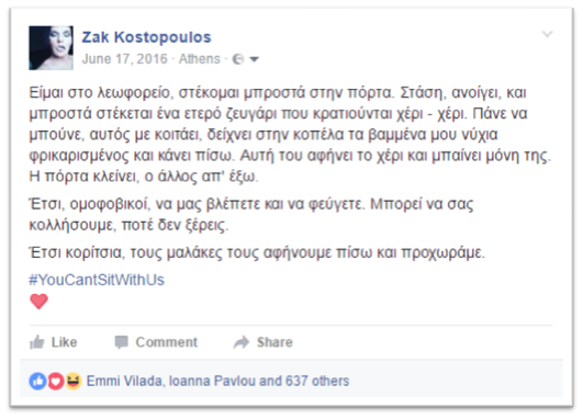 Έτσι ομοφοβικοί να μας βλέπετε και να φεύγετε. Μπορεί να σας κολλήσουμε. Ποτέ δεν ξέρεις.